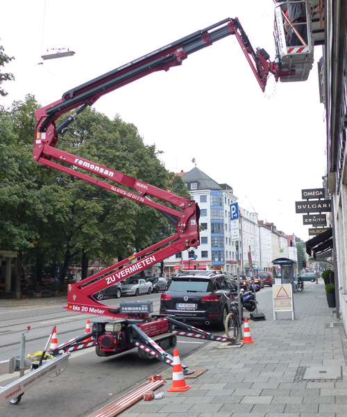 Gern vermieten wir Ihnen unsere kompakte und leistungsstarke Raupenarbeitsbühne.
